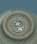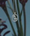 This intricate pendant necklace was inspired by the beautiful occurrences of our natural world. Featuring two blossoms from a peach tree, this piece symbolises renewal and resilience. It is both delicate and sturdy, handcrafted from solid 925 silver, suspended from a fine solid silver chain.